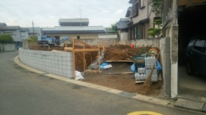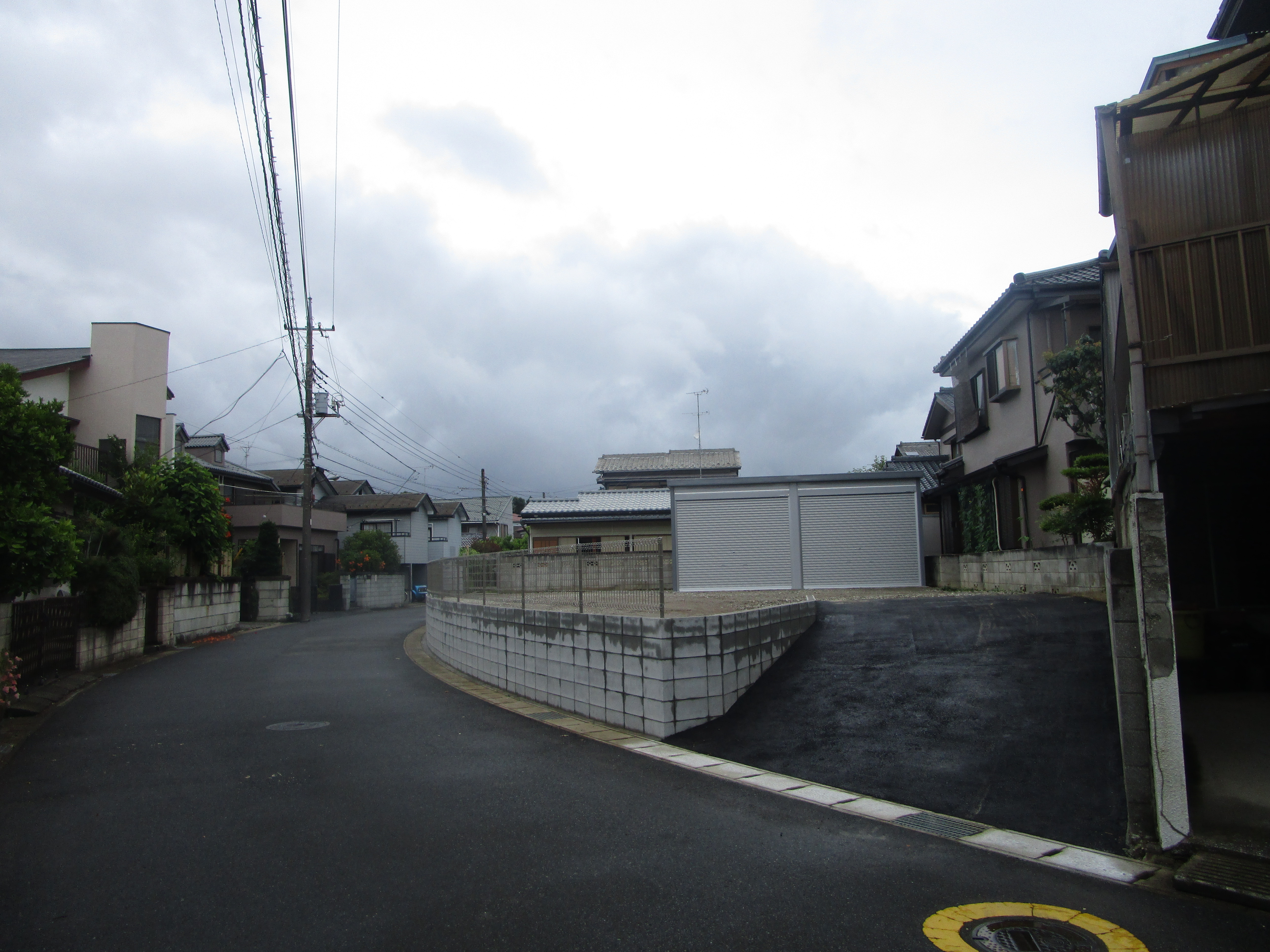 ブロック積み フェンス取り付け ガレージ 砕石駐車場