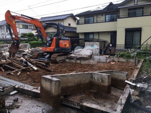 木造33坪 足場養生 内装解体 瓦降ろし 躯体解体 基礎解体 残土鋤取り工事 整地