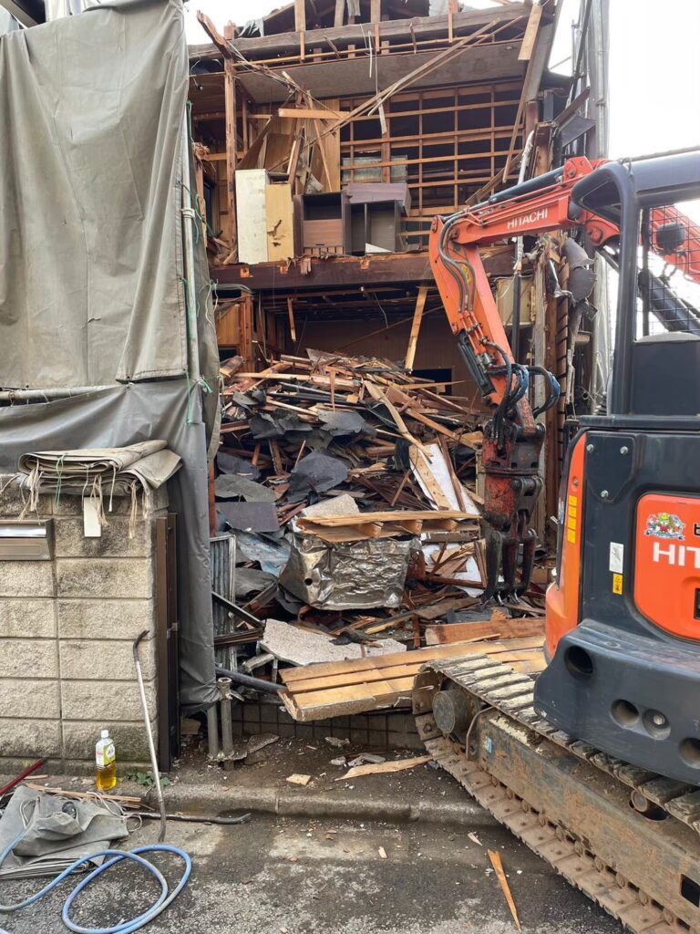木造解体工事 足場 瓦葺落とし 内装工事 躯体解体 基礎解体工事ブロック解体工事 整地